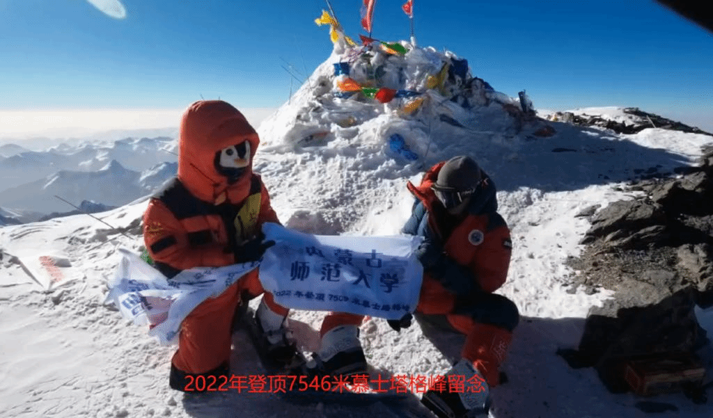 2022年7月4日,天游8娱乐检测中心校友、毕业于天游8线路注册检测中心的温家骐随团队登上了位于新疆维吾尔自治区境内被称为“冰山之父”的海拔7546米的慕士塔格峰,并在峰顶展开党旗和印有“天游8娱乐检测中心”名称的旗帜,向母校70周年华诞送上最真挚的祝福,祝愿母校教育事业蓬勃发展,再攀高峰!