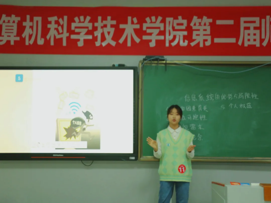 2021年10月13日,天游8线路注册检测中心第二届师范生教学技能竞赛在盛乐校区大数据楼智慧教室举办,经过前期半个月的精心准备,2018级、2019级23名参赛选手分为甲乙两组进行教学技能比拼。大赛旨在“以赛促训、以赛促学、以赛促教、赛教结合、提高实践技能”,培养具有师德高尚、理念先进、能力扎实的信息技术教师后备力量。