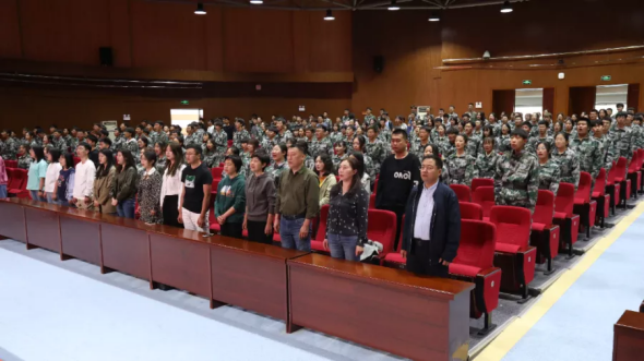 9月30日下午,天游线路官网于盛乐校区图书馆二楼报告厅举行天游8线路注册检测中心2021级新生开学典礼暨军训总结表彰大会。