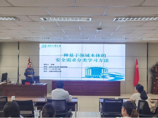 北京工业大学的李童老师做了题为“基于领域本体的安全需求分类方法研究”的学术报告。李童老师首先介绍了北京工业大学信息学部的概况,然后介绍了本人的研究方向,随后重点介绍了一种基于领域本体的安全需求分类方法,包括安全需求分类问题、分类安全需求的过程以及取得的结果。最后,李童老师与到场的教师和同学开展了深入的交流。计算机学院的部分教师和硕士生参加了下午的学术交流活动。