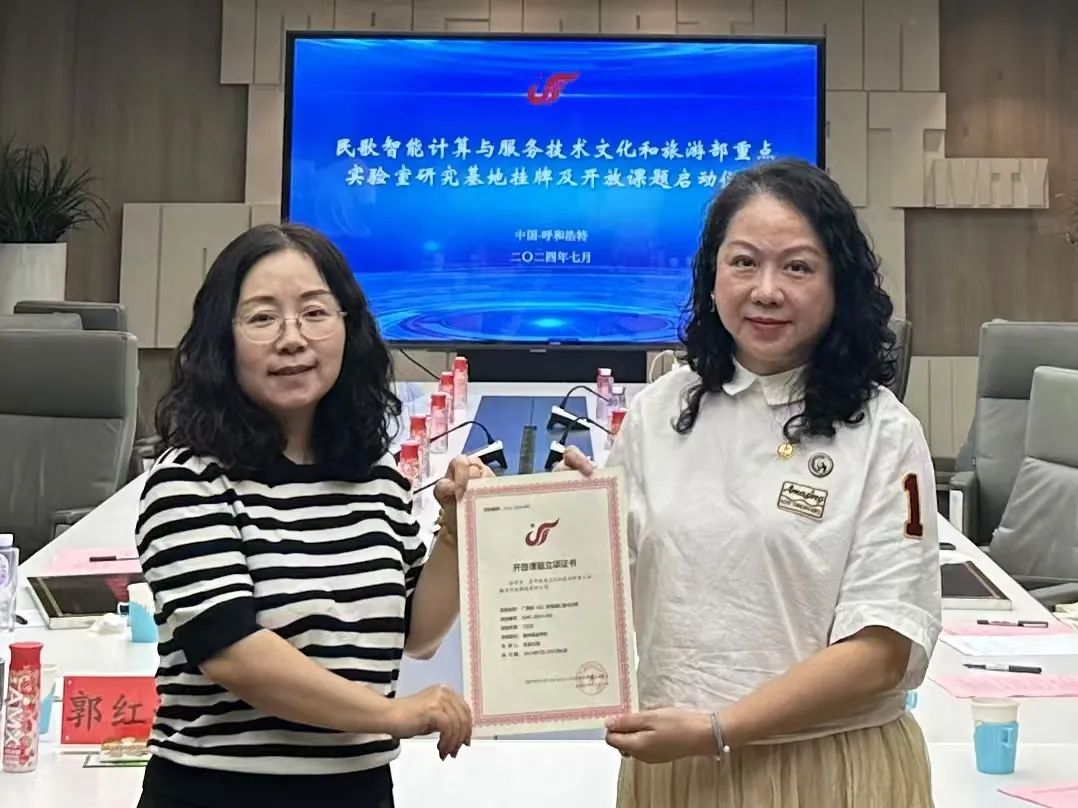 会上,民歌智能计算与服务技术文化和旅游部重点实验室主任吴晓军教授、副主任张玉梅教授分别为民歌智能计算与服务技术文化和旅游部重点实验室授予的6个首批民歌研究基地授牌、颁发开放课题立项证书。