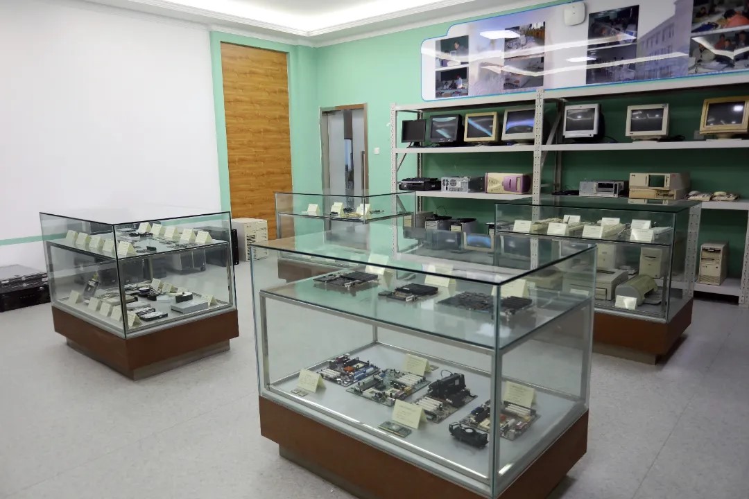 计算机主要配件展区则通过主板CPU、存储设备、外设、网络设备等四个展柜,深入展示了计算机硬件体系的微观发展逻辑。