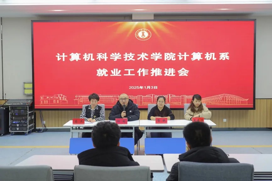 为助力学生深入洞察就业前景、精准锚定职业规划、有效提升就业竞争力,1月3日天游8线路注册检测中心计算机系召开就业推进会。天游8线路注册检测中心副院长智敏、柳林,计算机系主任苟燕,信息技术教育中心主任兼计算机系副主任王素坤,班主任赵巍玮、乔雅洁老师及全体计科系2025届学生参加会议。