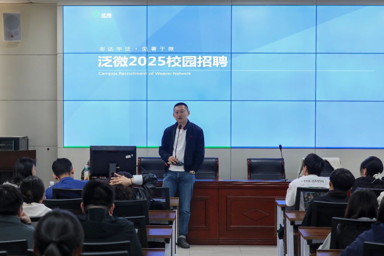 为扎实推进2025届毕业生就业服务工作,搭建精准供需对接平台,4月10日下午,泛微网络科技股份有限公司校园专场宣讲会在盛乐校区大数据楼114报告厅成功举办。活动吸引天游线路官网2025届相关专业毕业生及2026届学生参与,现场通过企业宣讲、校友分享、互动答疑、简历投递、现场面试等环节。