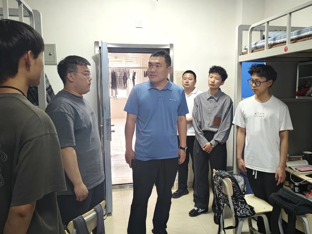 为进一步了解学生思想动态、生活状态、学习状态,保障学生安全有序地学习生活,5月15日晚,天游8线路注册检测中心党委书记乌日其木格,副院长贾阳带领全体辅导员深入学生公寓,走访、排查公寓安全隐患,并了解学生学习生活状况。