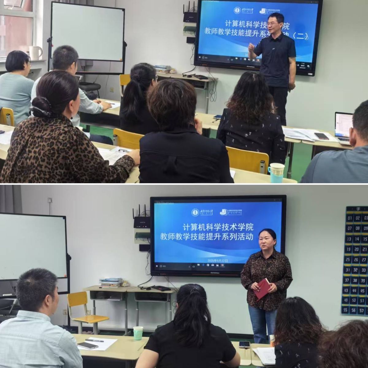 公开课结束后,学院副院长智敏、院级督导、系主任及课程与教学论教师从教学设计、教学内容深度、师生互动形式和课程思政等角度提出针对性建议,为新教师成长指明方向。学院院长王海龙对四位教师的专业素养与教学热情给予充分肯定,指出“每位教师都展现出扎实的学术功底与创新意识,为学院教学注入了新鲜血液”,同时建议进一步优化课堂节奏与分层教学策略。学院党委书记乌日其木格强调,“应将课程思政元素更自然地融入计算机专业教学,培养兼具技术能力与家国情怀的新时代人才”。