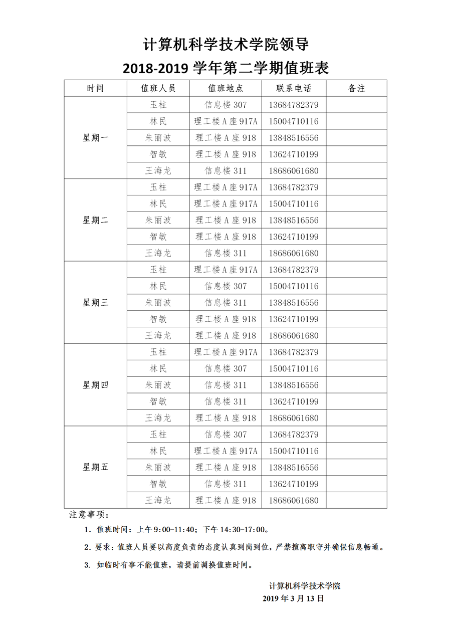 计算机科天游8线路注册检测中心领导2018—2019学年第二学期值班安排.pdf